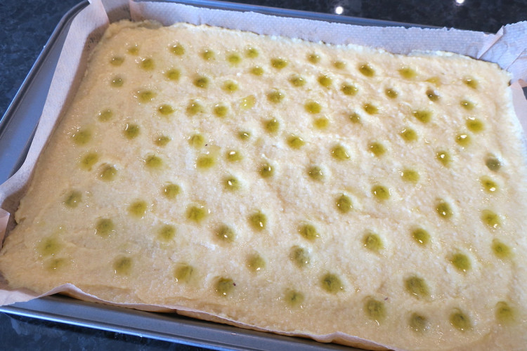 - spread the mixture over a lined 22cm x 32cm (8.5" x 12 5") baking tray; flatten with the spatula to a smooth, even surface, covering the whole tray; it helps to wet the spatula so it doesn't stick.