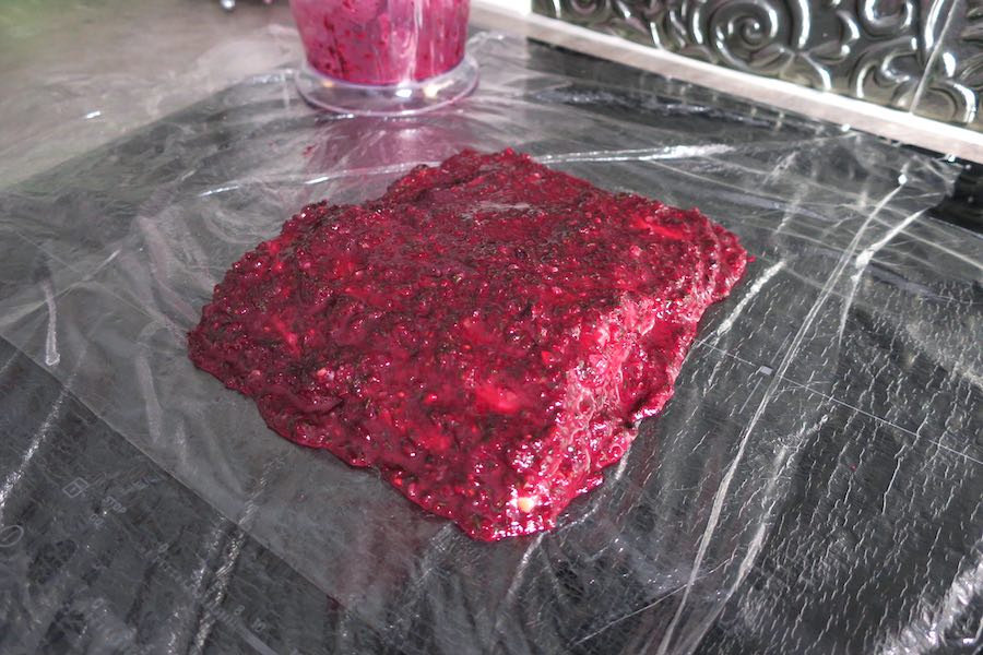 - wearing food-safe disposable gloves (U.S. option HERE), top + tail and peel the beetroot, then cut it into cubes, placing it in a food processor together with all other ingredients (except salmon, of course).