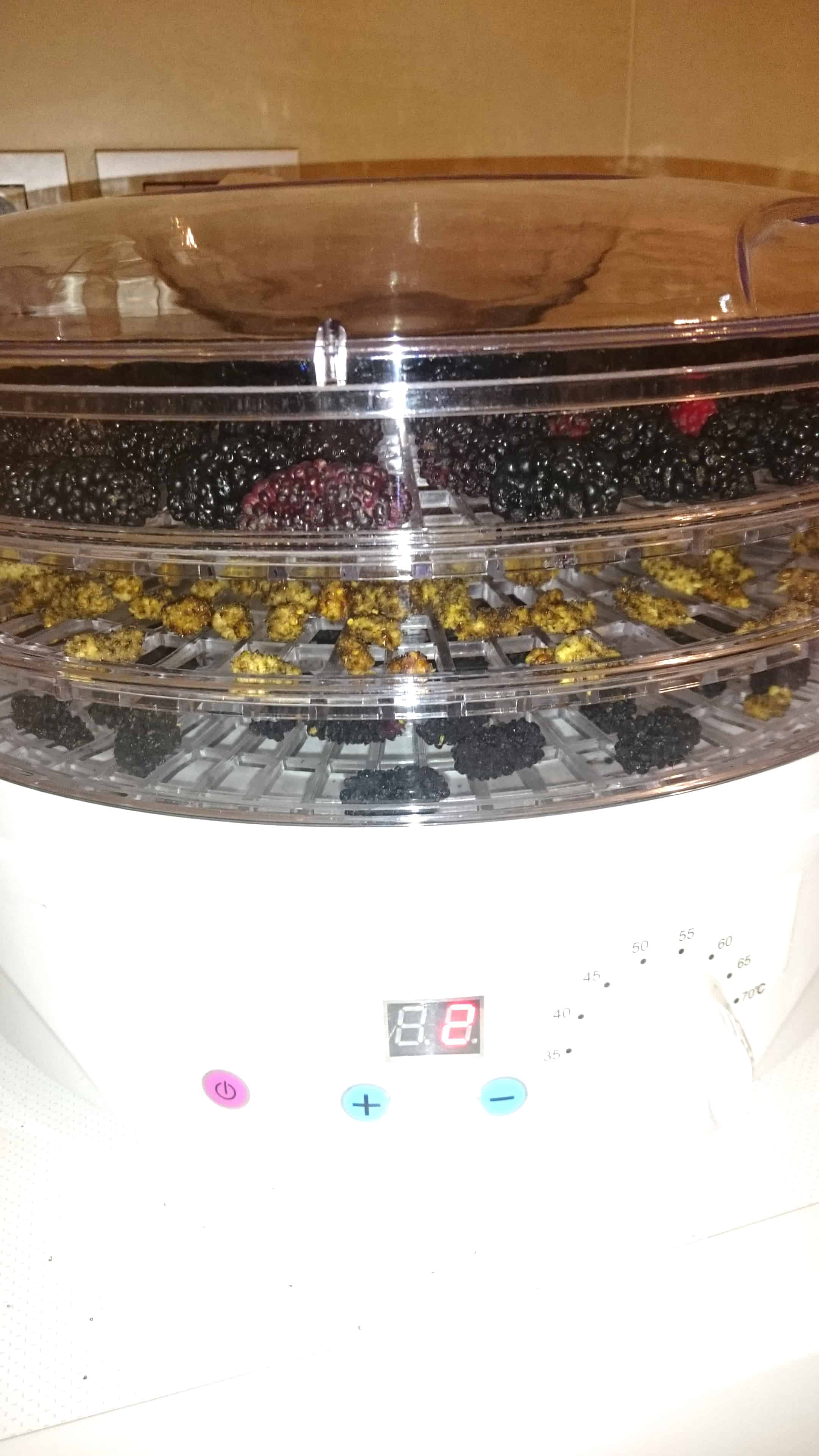 So now you’re probably wondering why I would want to dehydrate mulberries, when it is common knowledge that dried fruits have a higher concentration of natural sugars and therefore carbs.