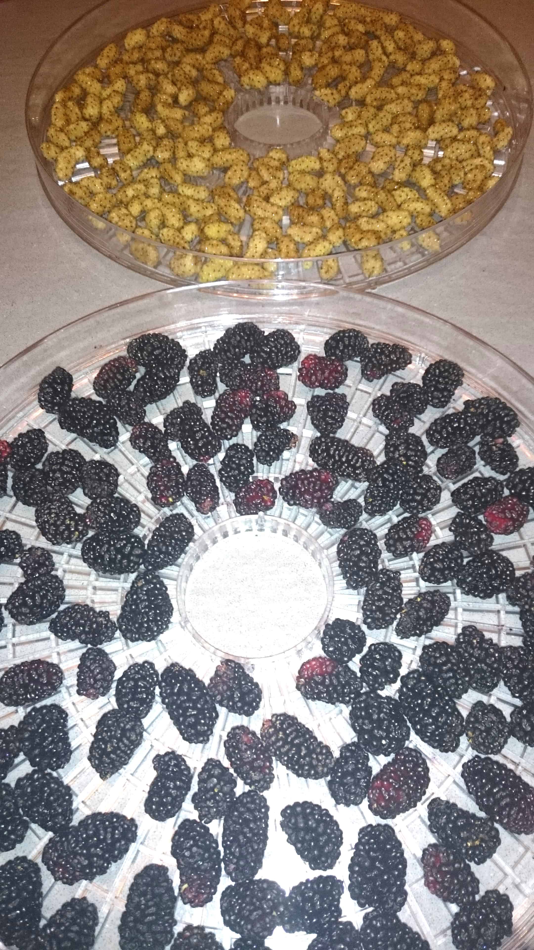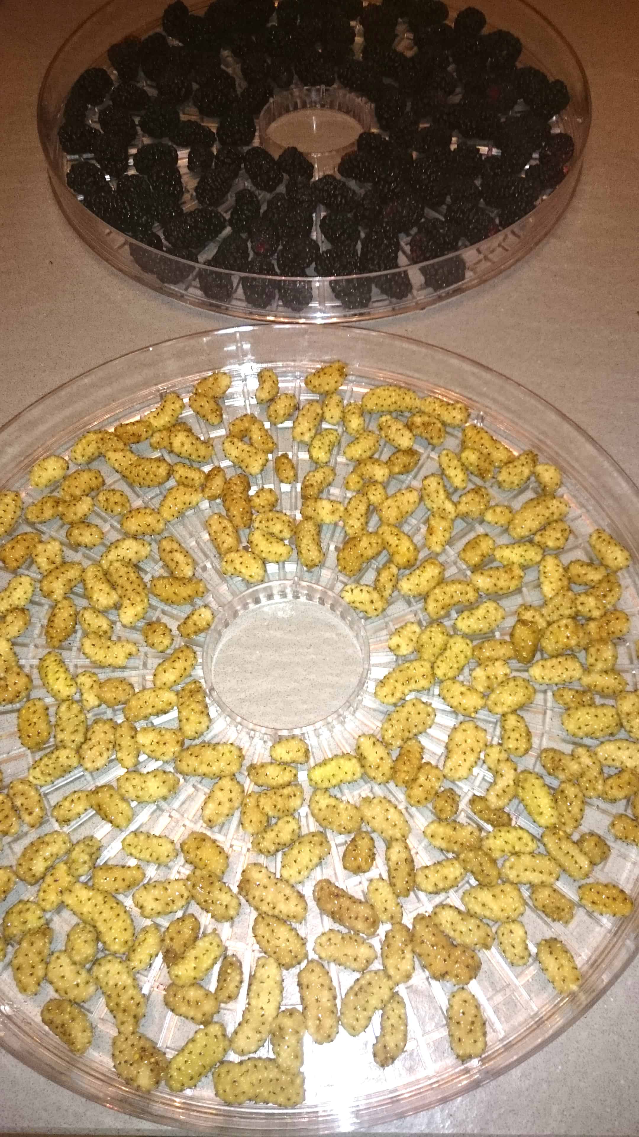 I have seen dehydrated white mulberries for sale on Amazon and elsewhere, but I really don’t recommend them – they’re tasteless and pure fructose, as well as expensive.